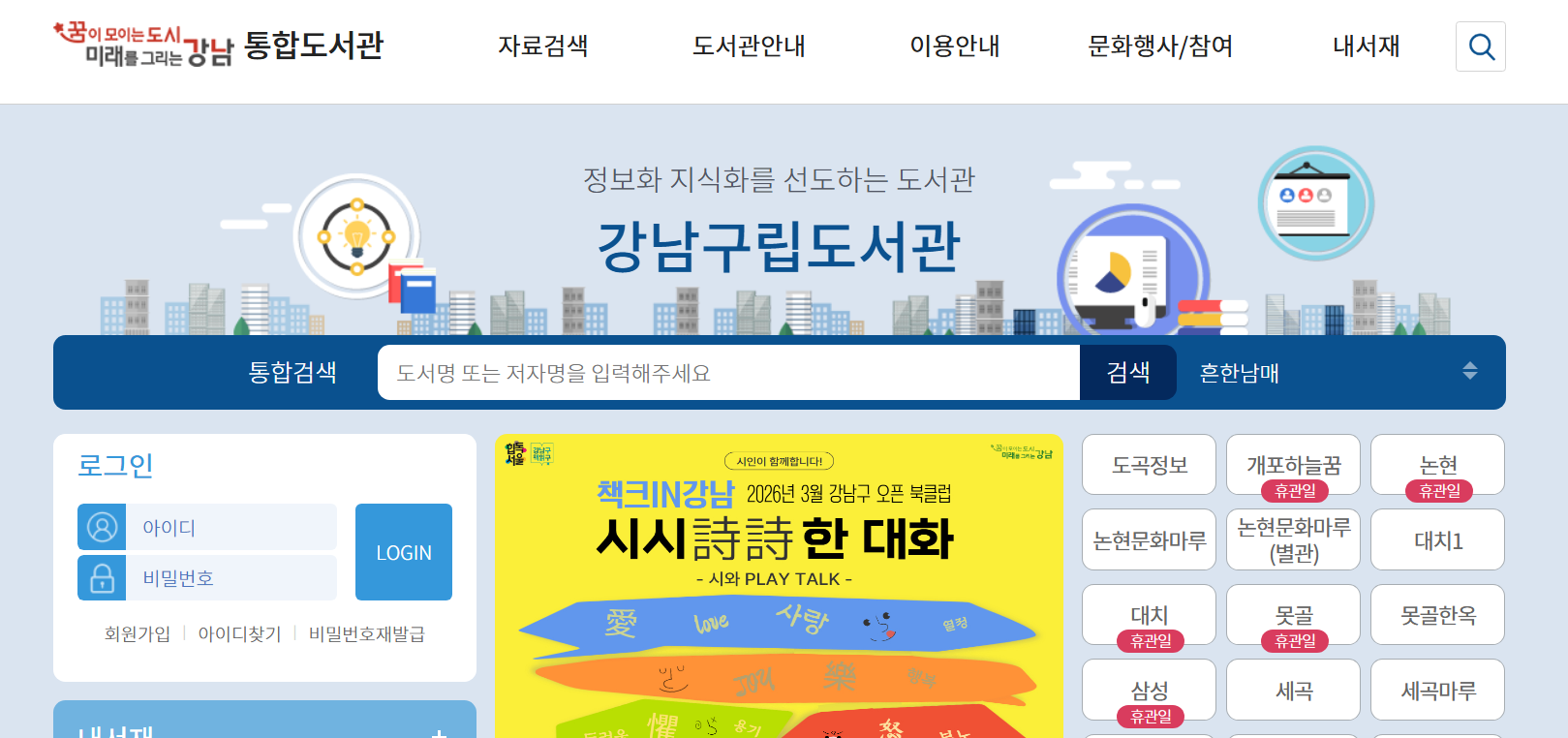 1. 강남구 통합도서관 홈페이지는 어디서 이용하나요