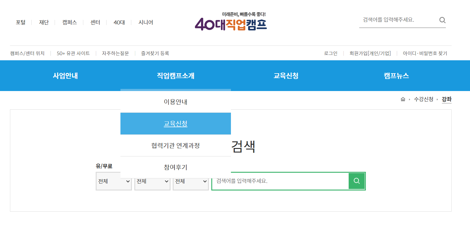 강좌에 따라 무료와 유료가 있으며, 유료 과정은 카드 결제 또는 무통장 입금으로 결제해야 신청이 완료됩니다.