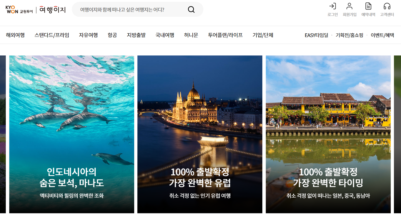 여행이지 홈페이지는 해외패키지와 국내여행, 프리미엄 상품 등을 나눠 보여주는 구조입니다. 공식 소개에서도 잘 만든 패키지여행을 강조하고 있고, 실제 상품 분류도 지역별·테마별로 나뉘어 있어 초보자도 비교하기 쉬운 편입니다. 즉 단순히 항공권만 파는 사이트가 아니라 일정, 호텔, 식사, 관광을 함께 묶은 패키지 중심 플랫폼으로 이해하시면 됩니다.