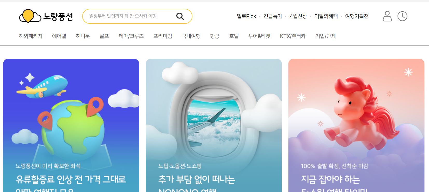 1. 노랑풍선 홈페이지 패키지는 어떻게 구성돼 있나
