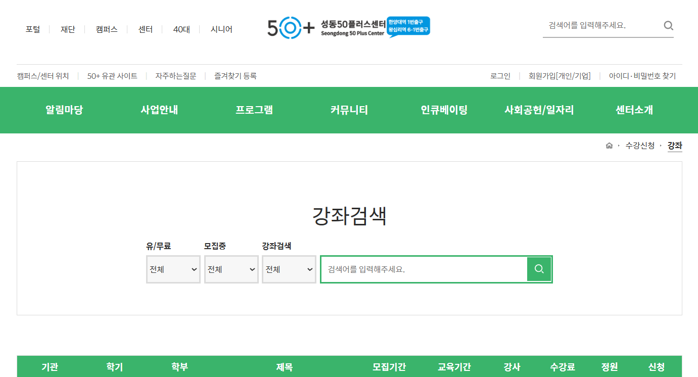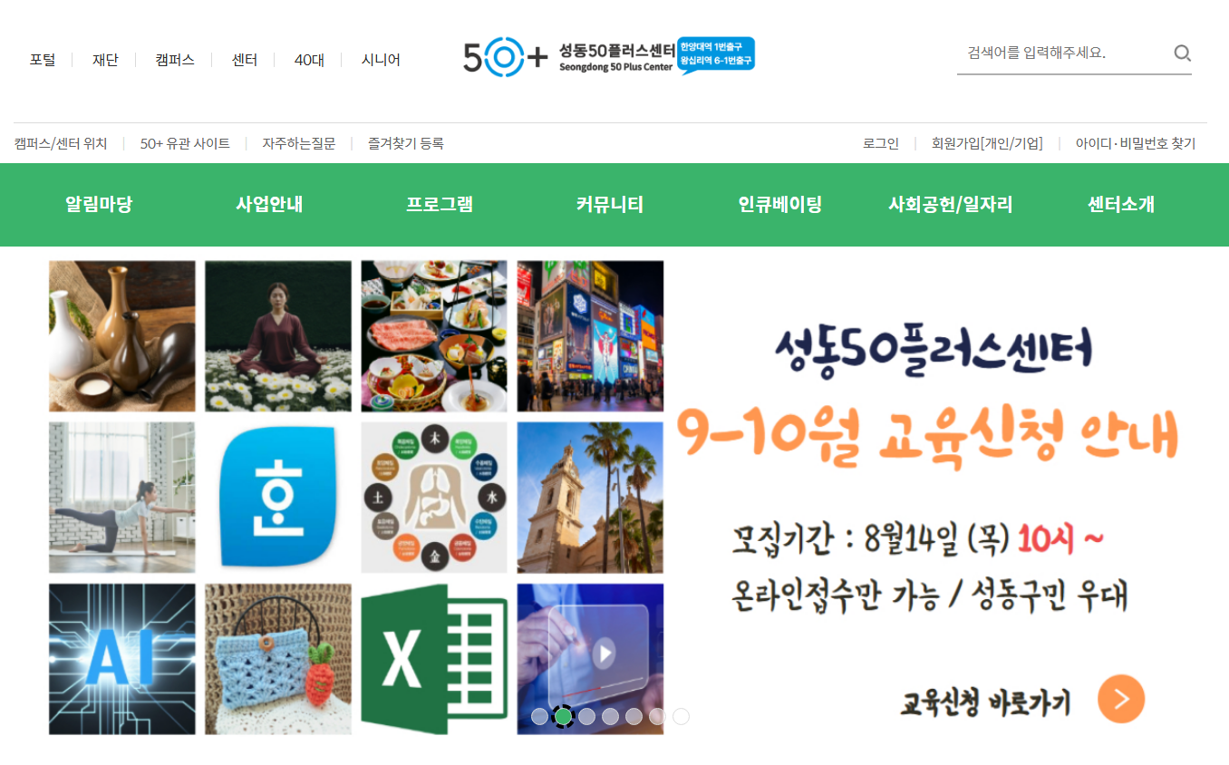 2. 성동50플러스센터 홈페이지 수강신청 방법