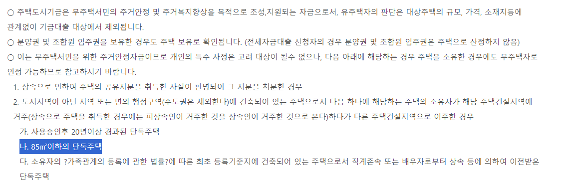 - 만 19세 이상 무주택자 기준 전용면적 85제곱미터 이하
