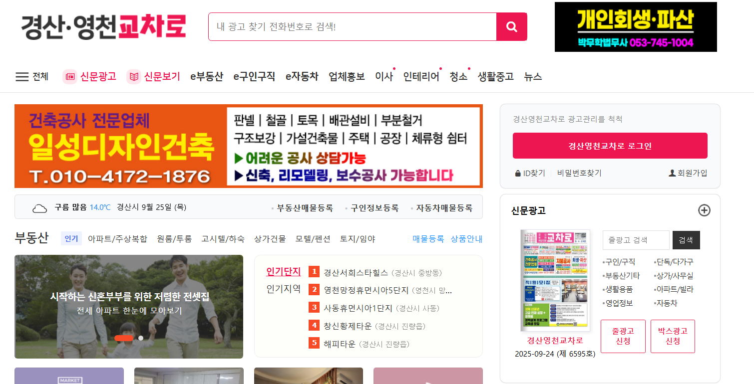 영천교차로 구인구직 신문은 영천 지역 주민들에게 꼭 필요한 생활 밀착형 정보 플랫폼입니다. 구인구직, 부동산, 자동차, 생활광고까지 온라인에서 손쉽게 확인할 수 있으며, 신문 그대로보기 서비스로 오늘자 정보를 편리하게 열람할 수 있습니다.