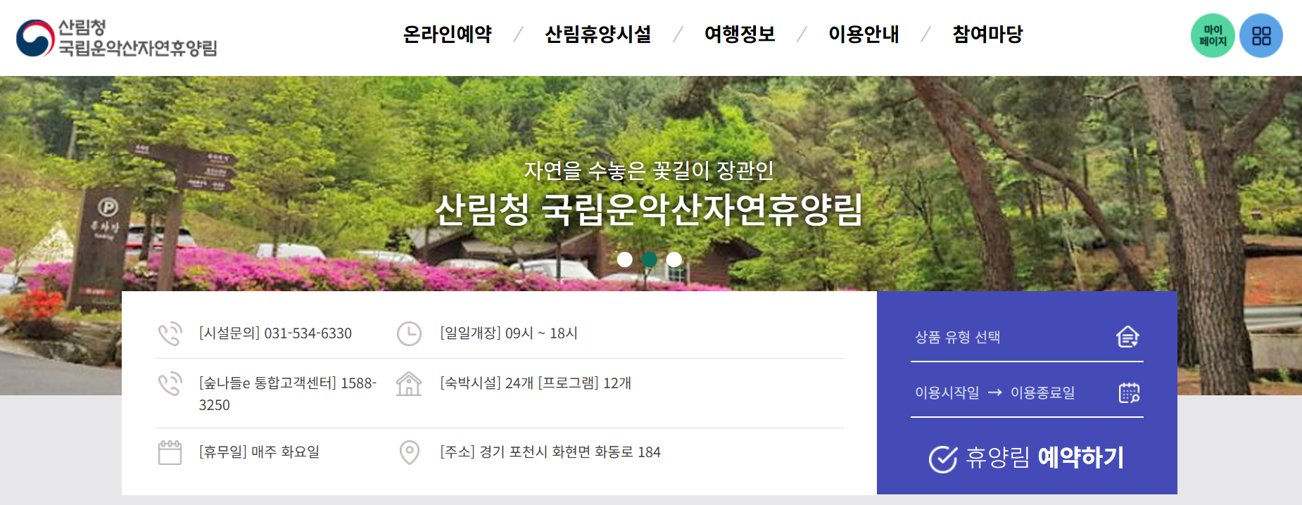 - 검색창에 ‘운악산 자연휴양림’ 입력