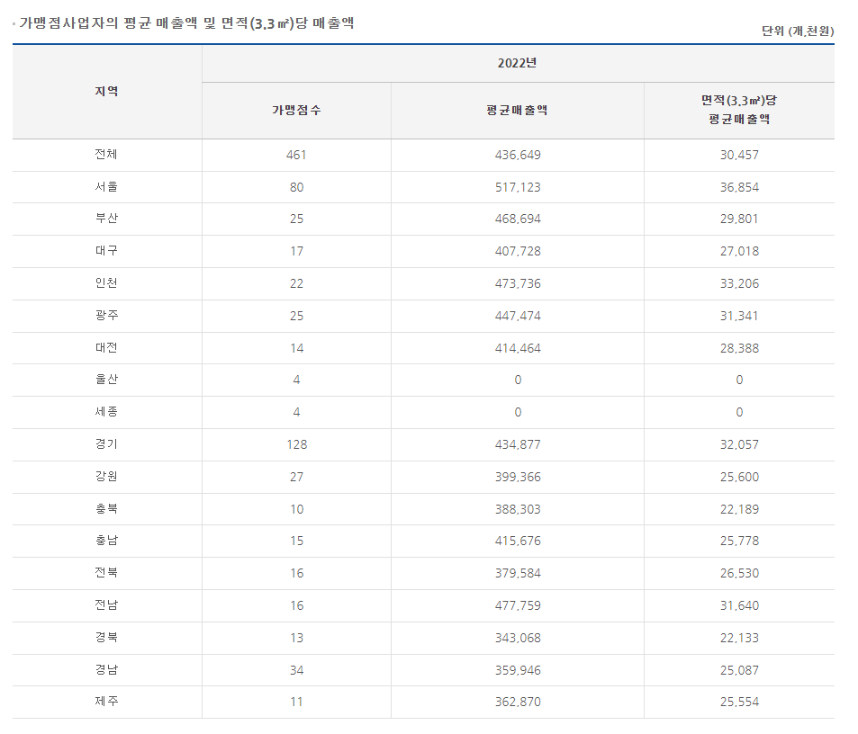 2022년도 기준 연 평균 매출 4억3,664만원, 월 매출 3,638만원 입니다.