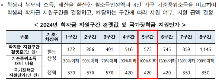 - 다자녀 가구, 자립준비청년, 보호아동 학부생은 소득기준 상관없이 신청 가능