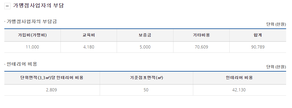 | 보증금 | 500만원 ( 물품보증금, 가맹종료시 반환) |