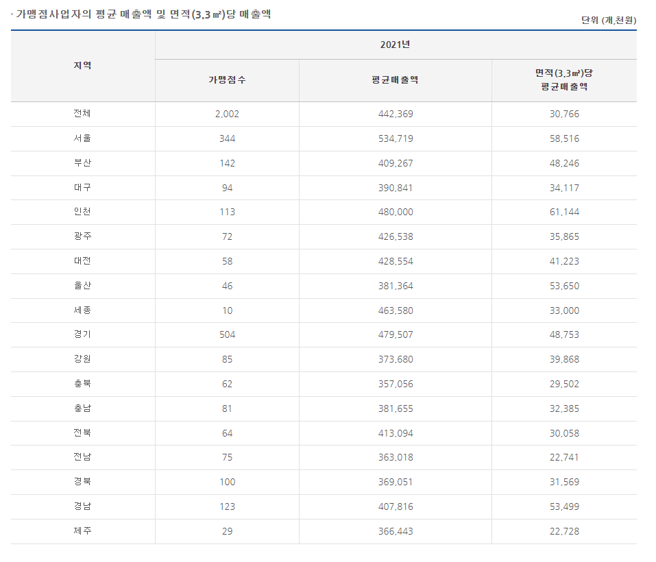 규모와 상권에 따른 차이는 있으니 참고해 주시면 됩니다.